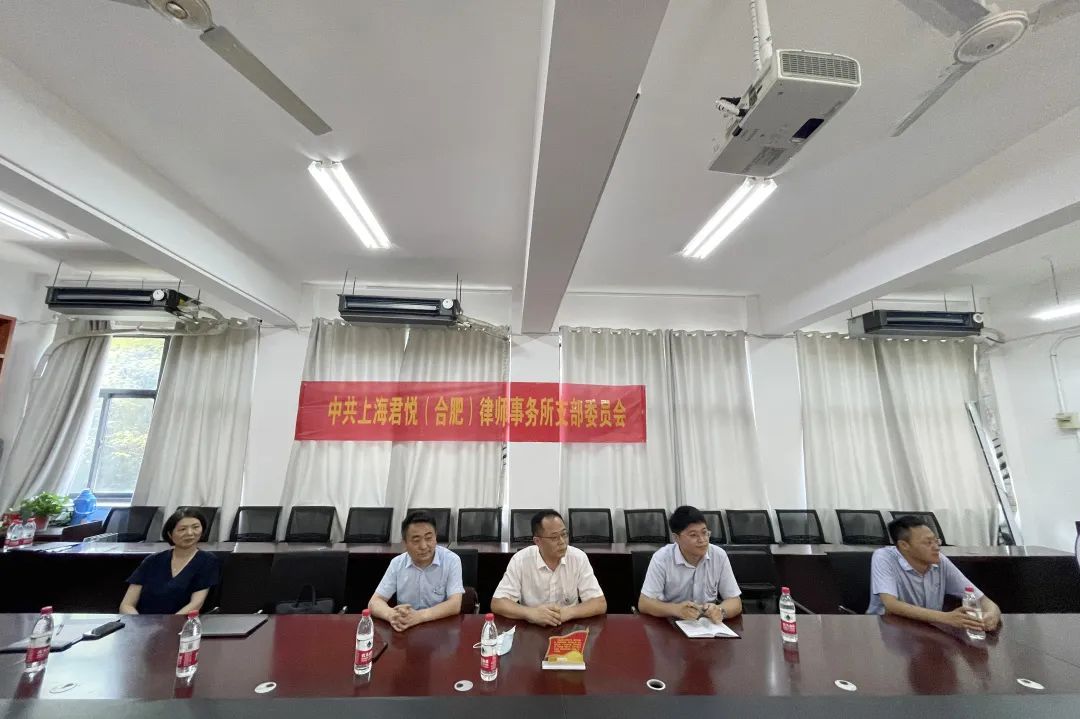 为庆祝建党101周年,落实“两拥一做”活动方案,进一步探索创新党建工作,充分发挥党建共建互融互促作用,加深校所党建合作,7月13日,君悦(合肥)律师事务所(以下简称“本所”)党支部书记朱向舟,管委会副主任程建华,周茂军,党支部副书记刘正锐,党员律师胡泽山走进安徽建筑大学公管学院开展了一场毕业交流座谈会。