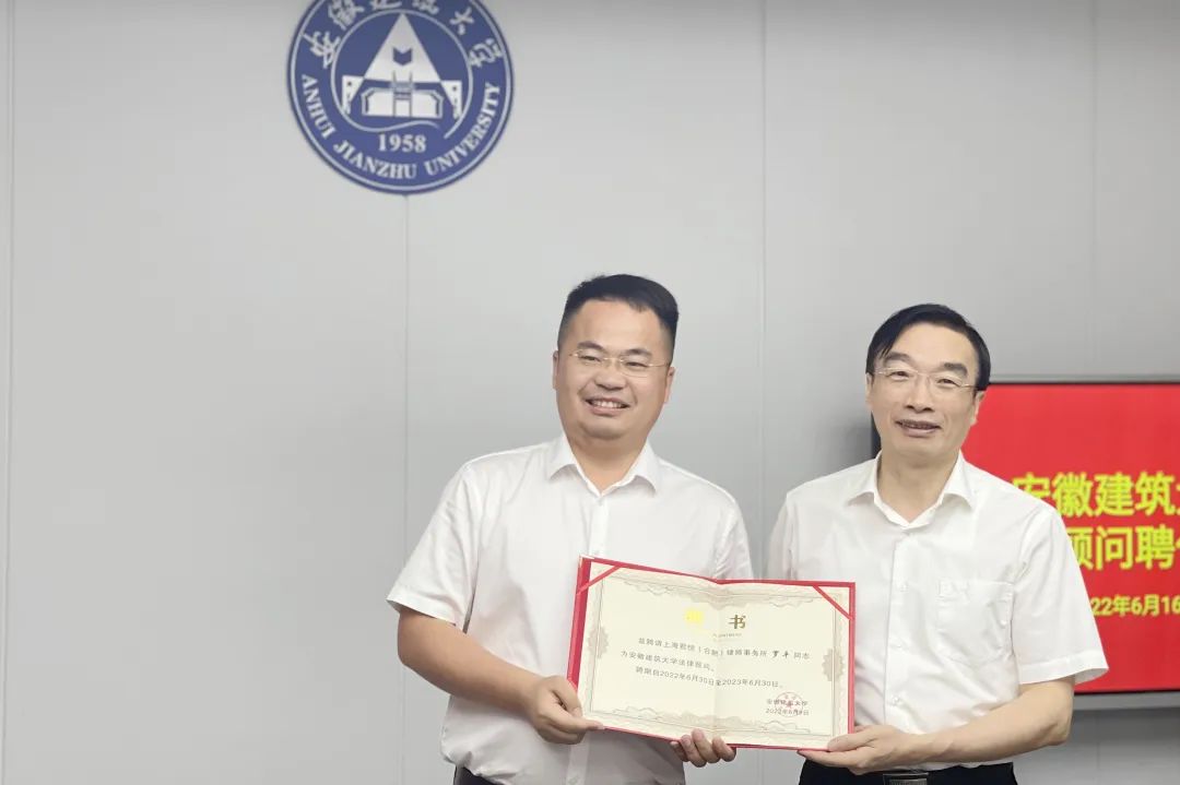 2022年6月16日上午,安徽建筑大学法律顾问聘任仪式在安徽建筑大学南校区举行。校党委书记孙道胜等领导出席聘任仪式活动。