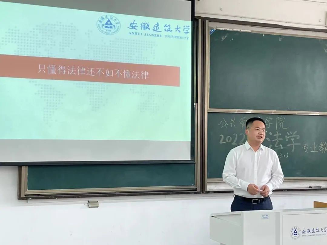 2022年9月28日下午,受安徽建筑大学邀请,安徽建筑大学法律顾问、兼职教授、硕士生导师、上海君悦(合肥)律师事务所主任罗平赴安徽建筑大学北校区开展2022级本科新生入学专业教育。