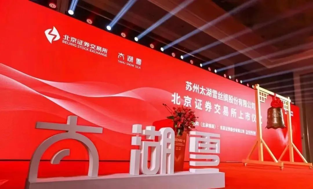 2022年12月30日,苏州太湖雪丝绸股份有限公司(证券简称:太湖雪,证券代码:838262)在北京证券交易所(以下简称“北交所”)成功上市,摘得北交所“新国货丝绸第一股”桂冠。